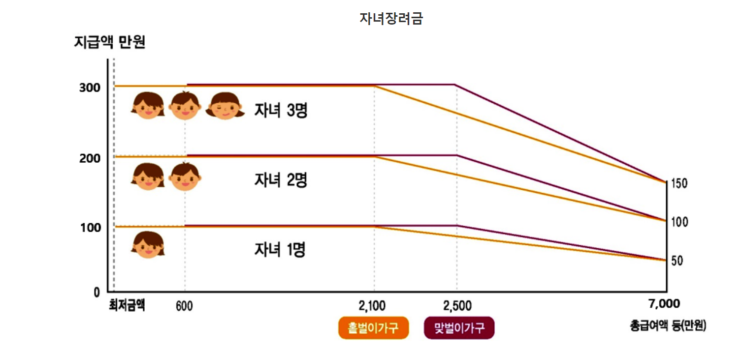 자녀장려금은 자녀 수에 따라 지급액이 달라집니다.