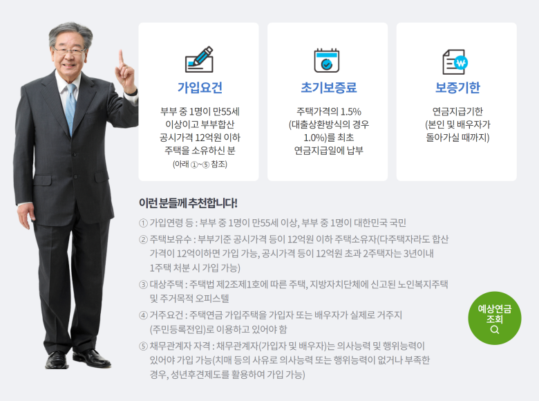 시가 12억 원 이하의 주택 또는 주거용 오피스텔을 소유하고 부부 중 한 명 이상이 만 55세 이상이면 누구나 신청할 수 있습니다.