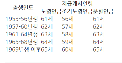 ✅조기노령연금: 55세부터 연금 수령 희망