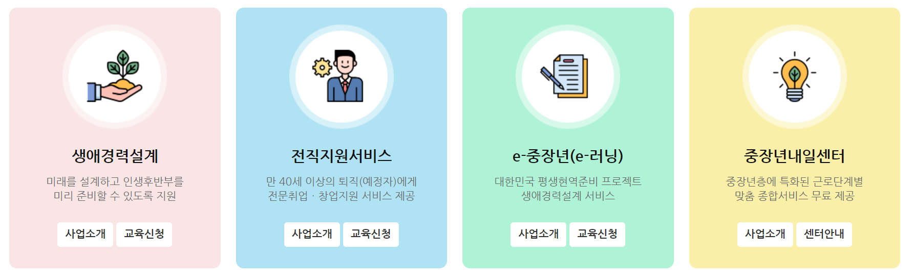 🤚주요 서비스: 생애경력설계, 전직지원, e-중장년 서비스 등 다양한 프로그램 운영