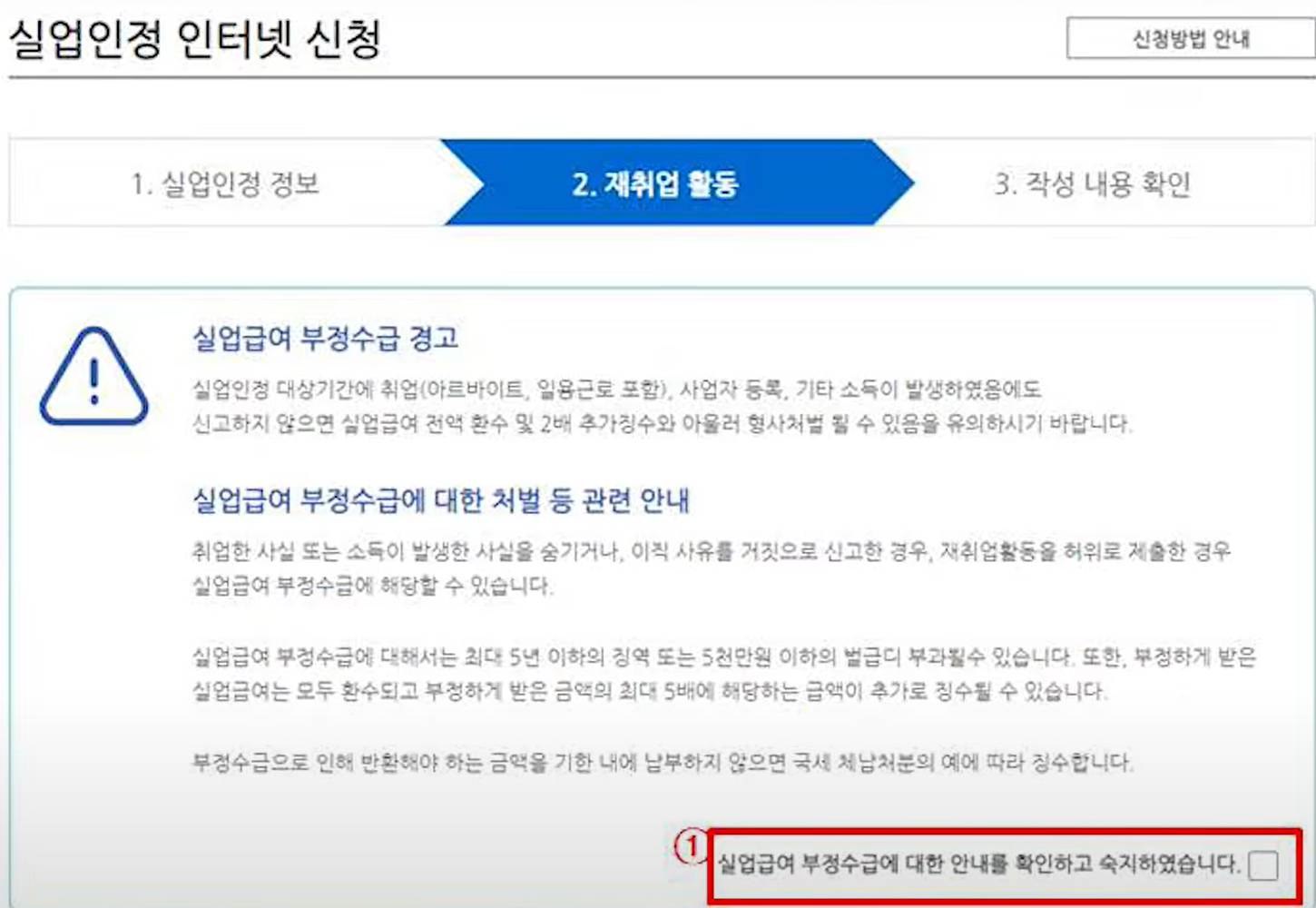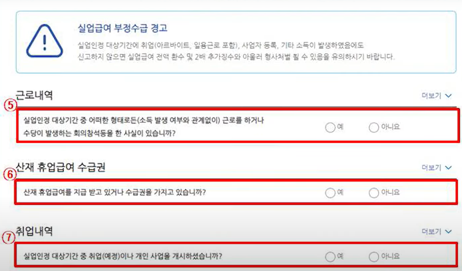 ☑ 제대로 작성하지 않으면 부정수급으로 적발될 수 있으니 주의깊게 작성해 주셔야 합니다.