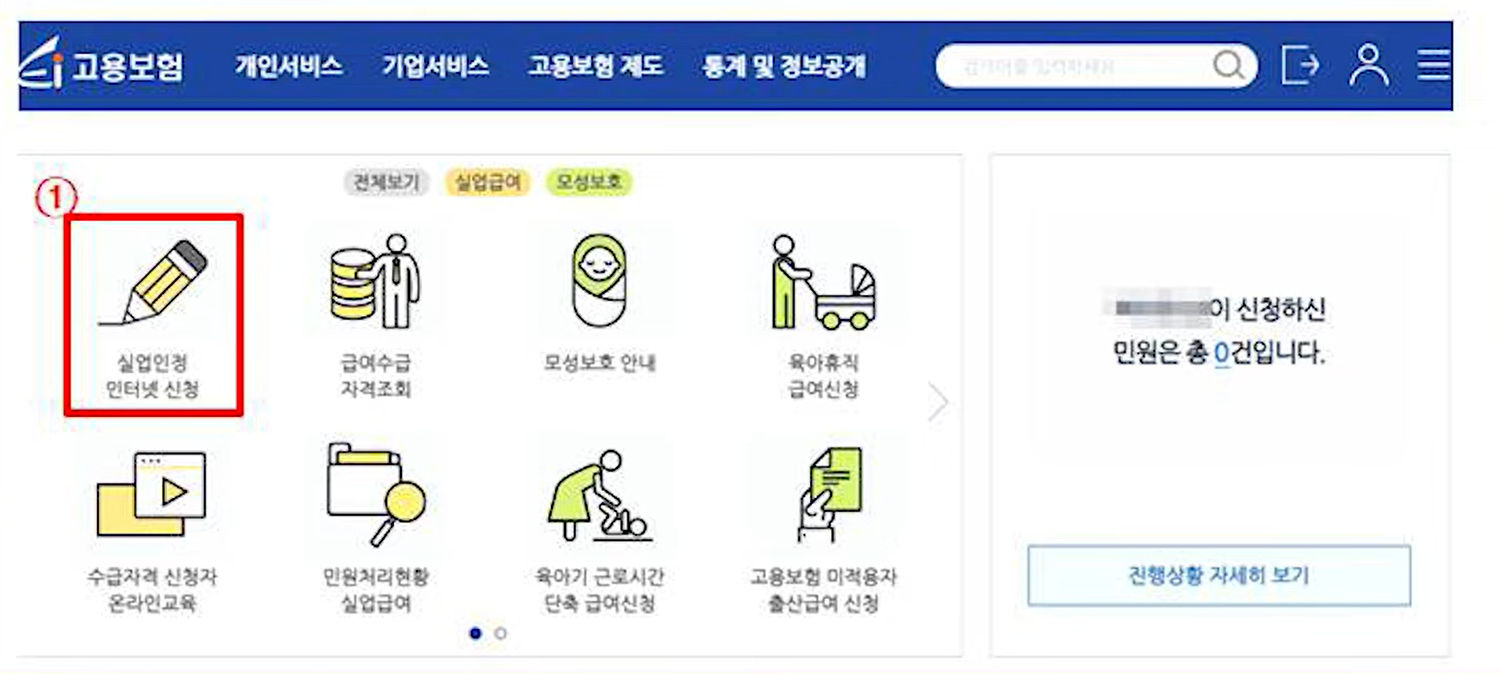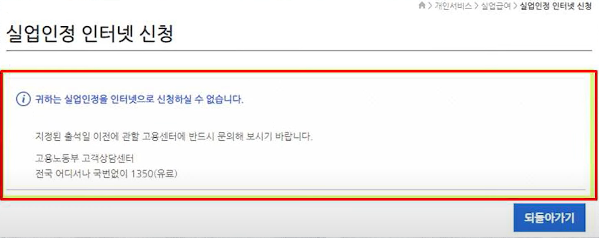 4️⃣인터넷 실업인정 대상자의 경우 아래와 같은 화면이 나타났니다.