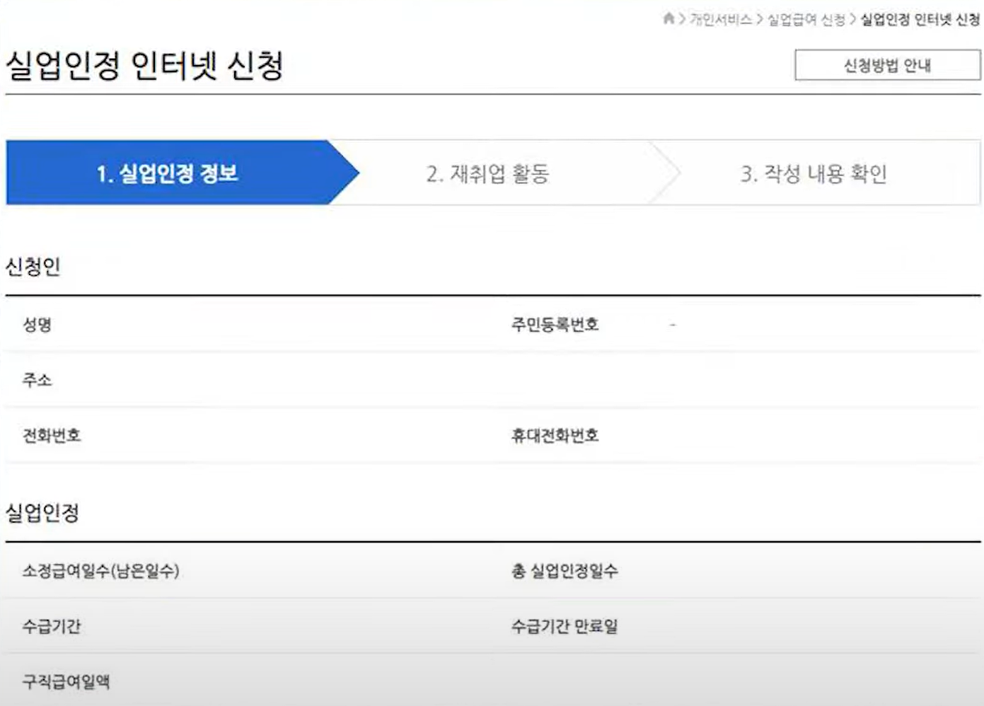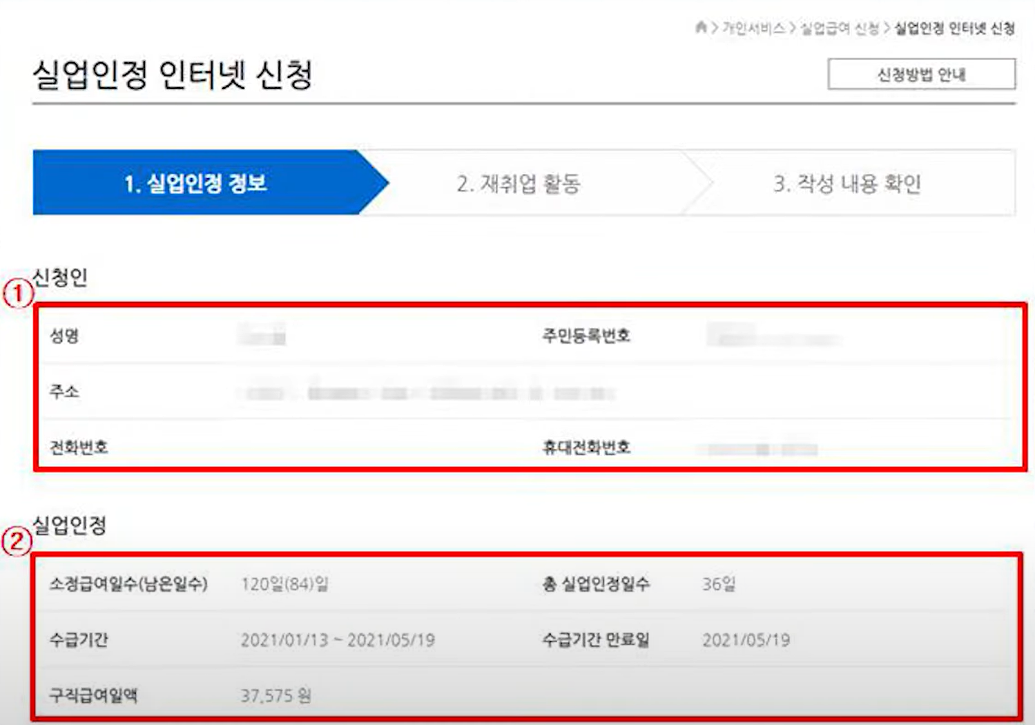 5️⃣신청인 정보 작성 및 실업인정 정보 확인