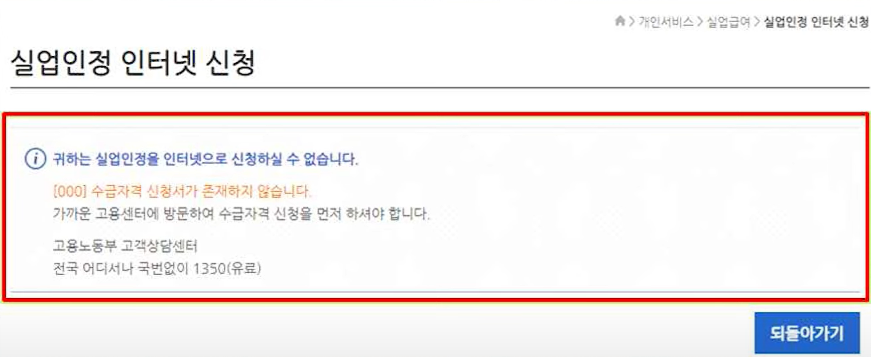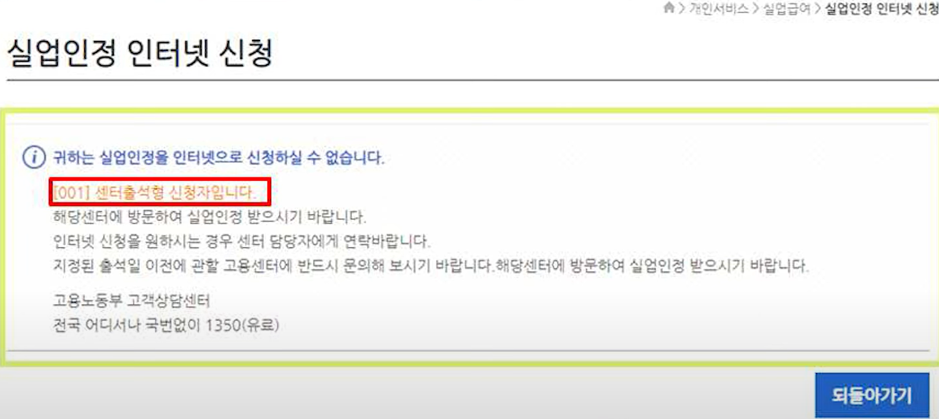 수급자격 신청은 했으나 고용센터에 방문해서 신청을 해야하는 경우