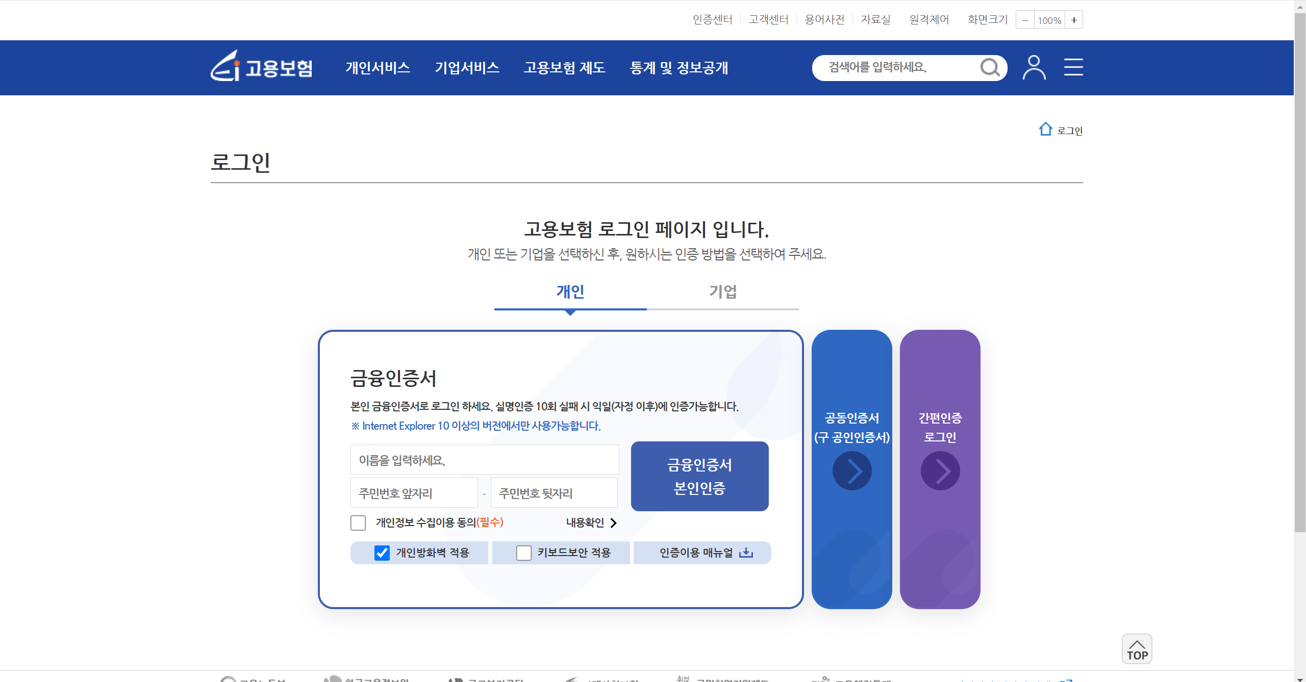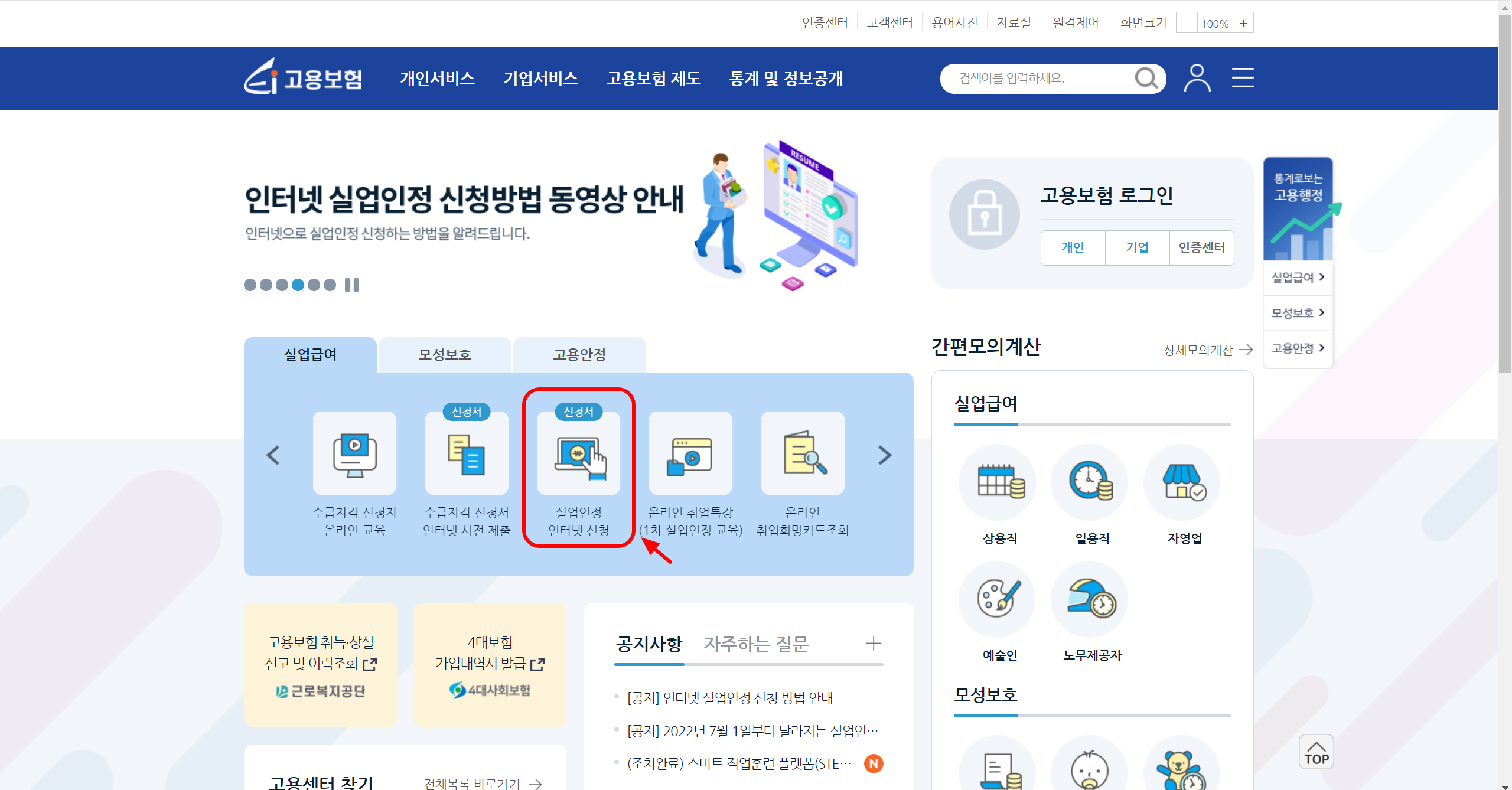 1️⃣고용보험 홈페이지에 접속을 합니다.