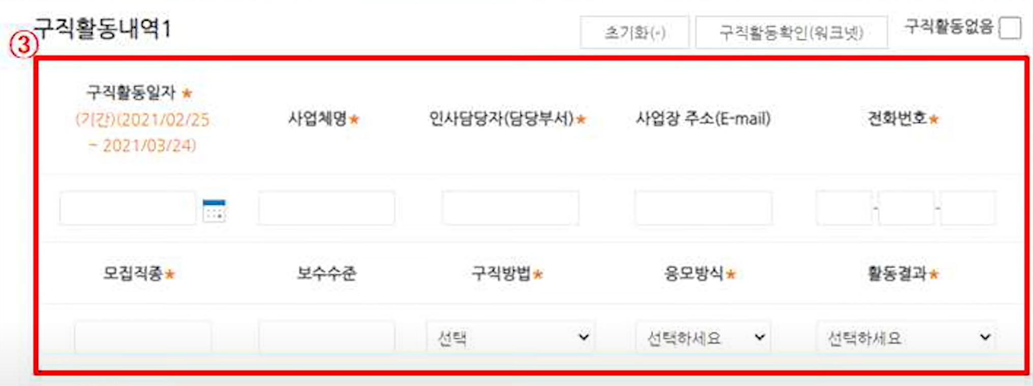 7️⃣재취업 활동 작성 페이지로 이동을 합니다.