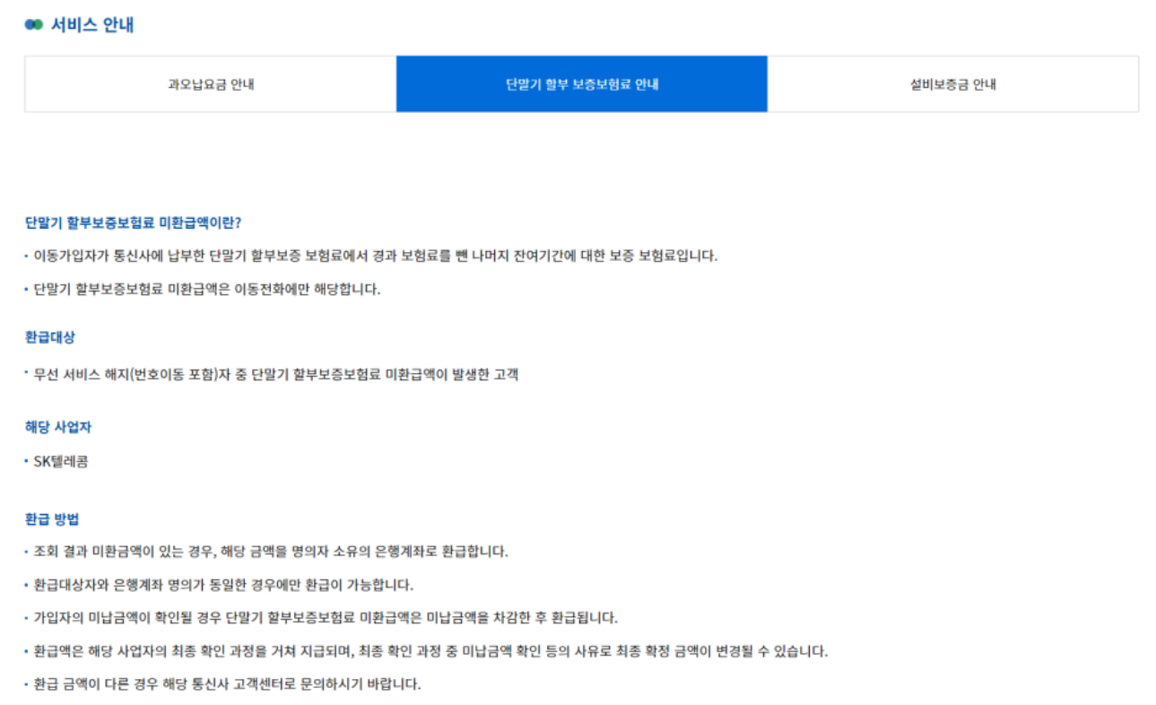 🔹환급 대상: 무선 서비스 해지(번호이동 포함)자 중 단말기 할부보증보험료 미환급액이 발생한 고객