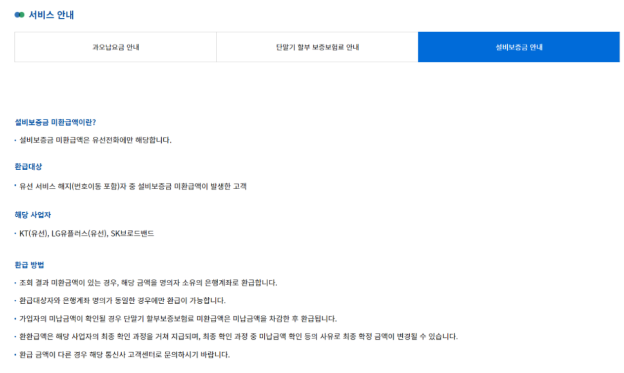 🔹설명: 유선전화 서비스 해지자 중 설비보증금 미환급금이 발생한 고객에게 돌려주는 금액입니다.