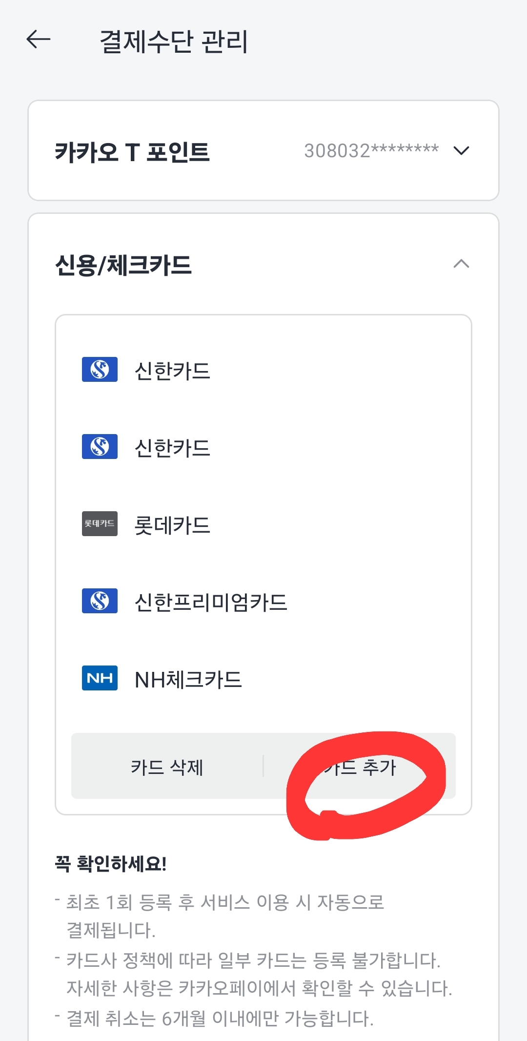 🔹카드 결제를 원할 경우, 택시 결제 방법에서 '카드 결제'를 선택합니다.