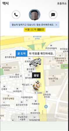 🔹기사님 도착 예정 시간을 실시간으로 확인하고, 해당 시간에 맞춰 나가 예약한 택시를 탑승합니다.