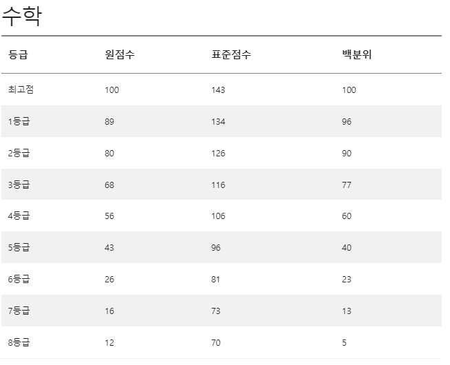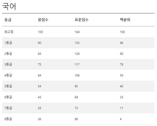 현재까지 공개된 예상 등급컷은 다음과 같습니다.